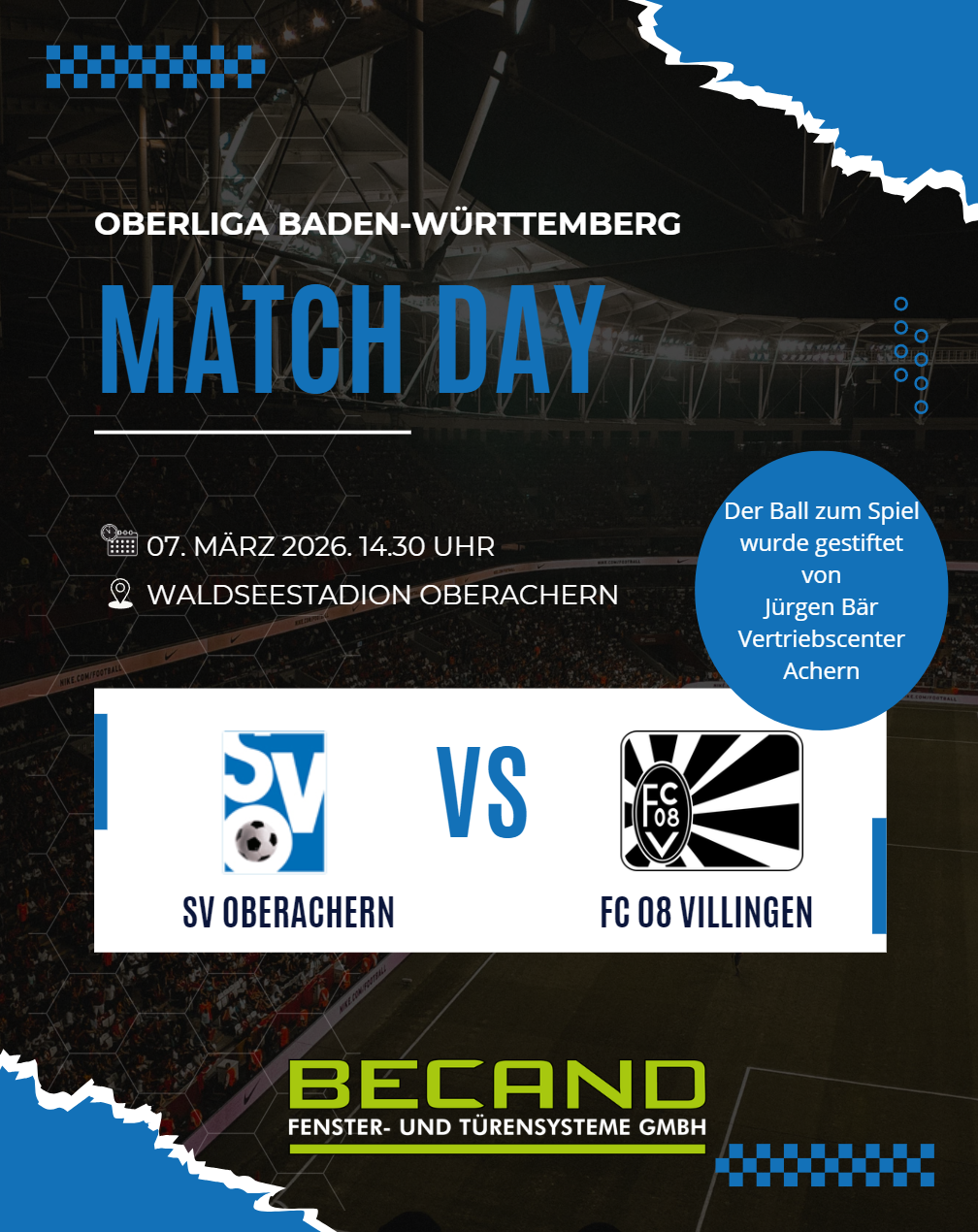 Unser Partner präsentiert 21. Spieltag Oberliga Baden-Württemberg Saison 2025/26 SSV Reutlingen 1905 – SV Oberachern Samstag 28.02.2026, 15.00 Uhr Kreuzeiche Stadion Reutlingen Die Freude beim SV Oberachern vor dem Start in das Punktspiel-Jahr 2026 gegen den TSV Singen war groß, doch dann machte der Wettergott einen dicken Strich durch die Rechnung. Beim kurzfristig angesetzten Testspiel […]