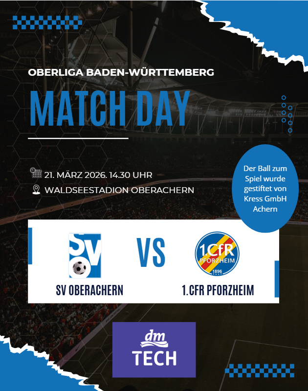 Unser Partner präsentiert 24. Spieltag Oberliga Baden-Württemberg Saison 2025/26 SV Oberachern – 1.CFR Pforzheim Samstag 21.03.2026, 14.30 Uhr Waldseestadion Oberachern Mit dem 2:0 am Mittwochabend im Nachholspiel gegen den TSV Singen schaffte der SV Oberachern zum zweiten Mal in dieser Saison den fast schon sensationellen Sprung auf den dritten Platz in der stark besetzten Oberliga. […]